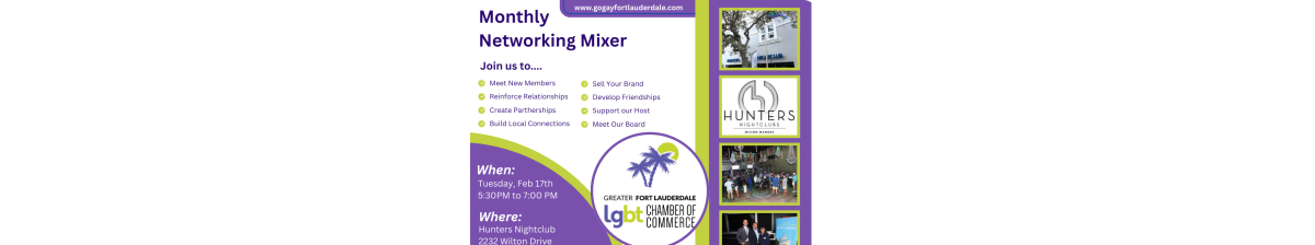 Join us as HUNTERS NIGHT CLUB Presents the February Mixer for the GFLGLCC - Greater Fort Lauderdale LGBT Chamber of Commerce