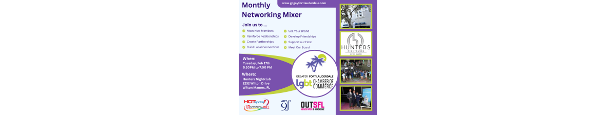 Join us as HUNTERS NIGHT CLUB Presents the February Mixer for the GFLGLCC - Greater Fort Lauderdale LGBT Chamber of Commerce